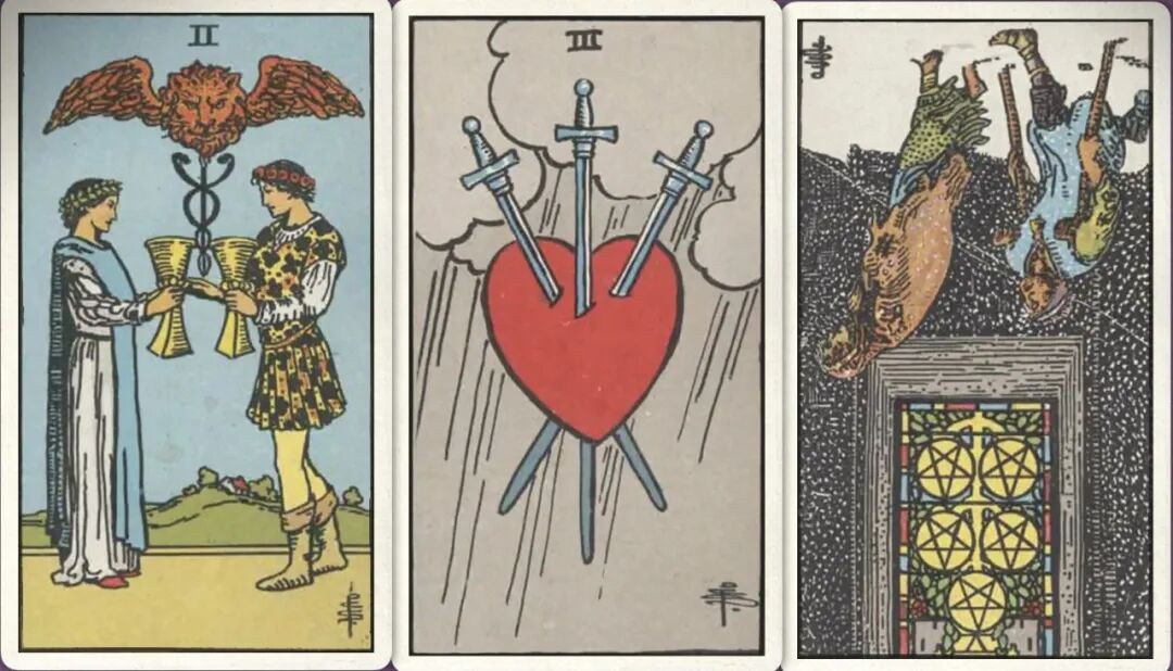 牌:圣杯二+ 宝剑三+ 星币五-