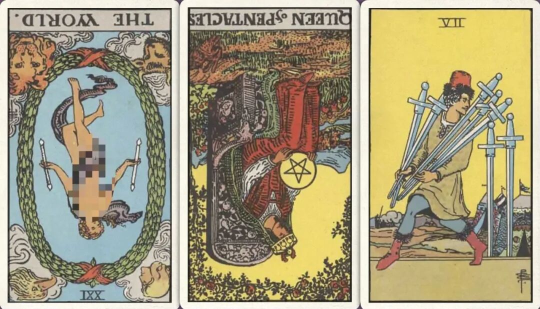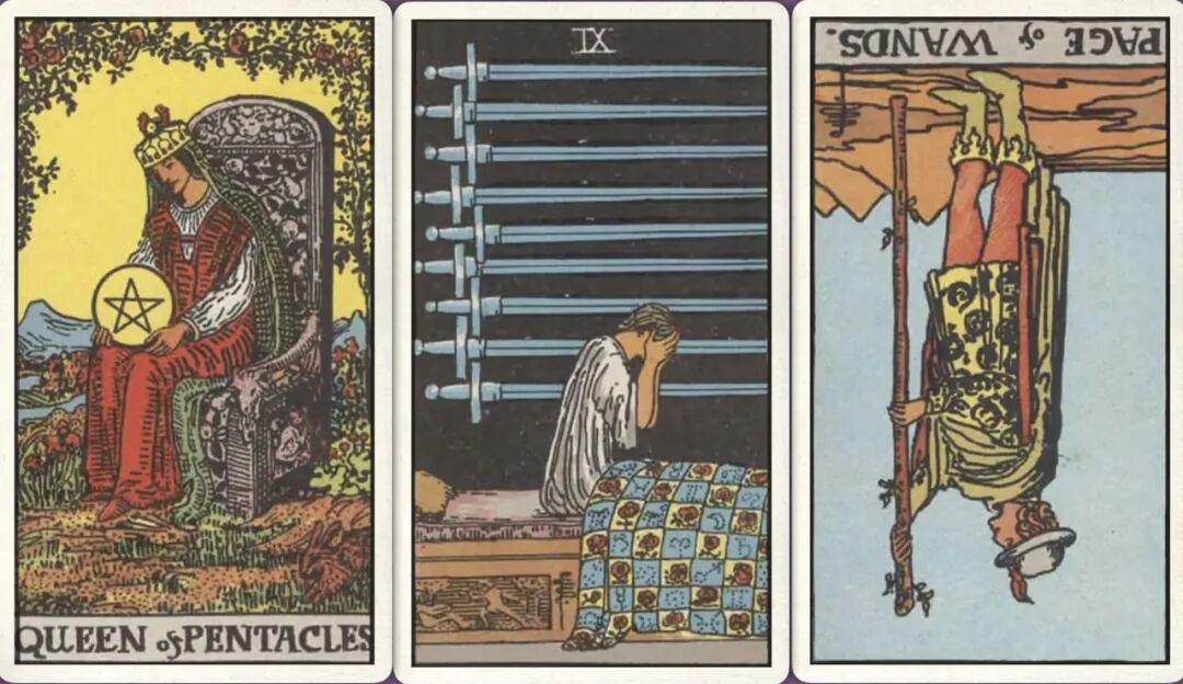 牌:星币皇后+ 宝剑九+ 权杖侍从-