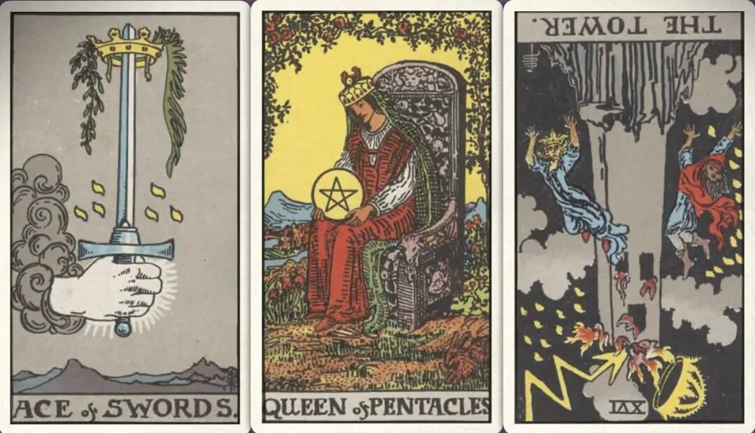 牌:宝剑ace+ 星币皇后+ 高塔-