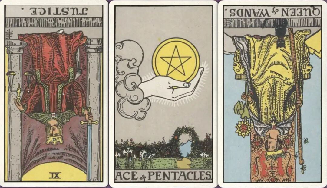 牌:正义- 星币ace+ 权杖皇后-