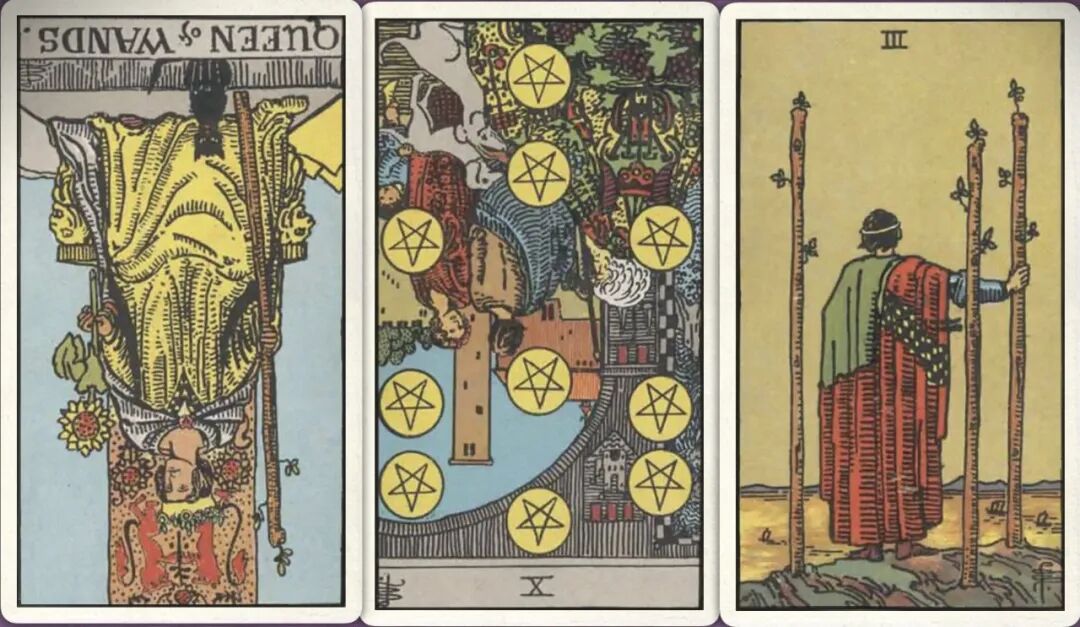 牌:权杖皇后- 星币十- 权杖三+
