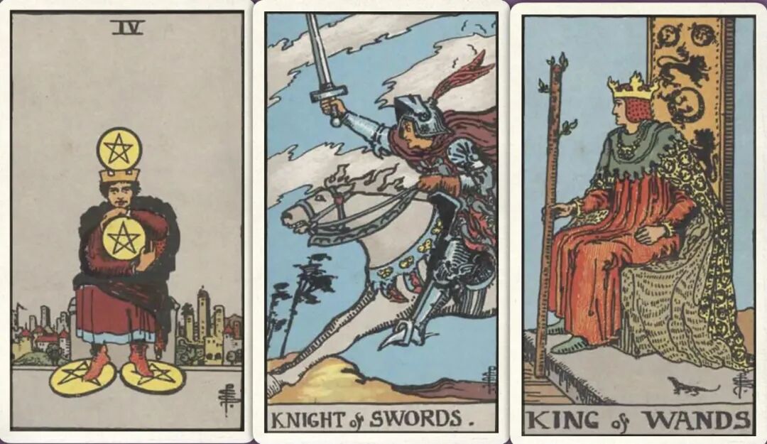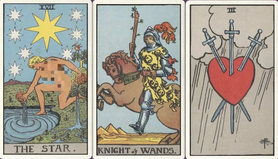 牌:星星+ 权杖骑士+ 宝剑三+