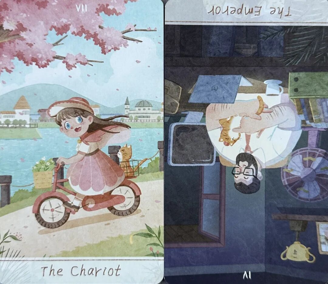 分析:两张都是大阿尔克那牌啊,说明你们很容易拥有较深的感情,相处起来比较有激情,但同时你们双方都是个性十足的,都比较强势,有自己的想法和坚持,很难为对方妥协和改变。这样的情况下,或许你们会拥有一段激情四射的感情,但同时要有结果也很难。你们很容易因为各自的坚持或者吵架等等,分道扬镳,各奔东西!