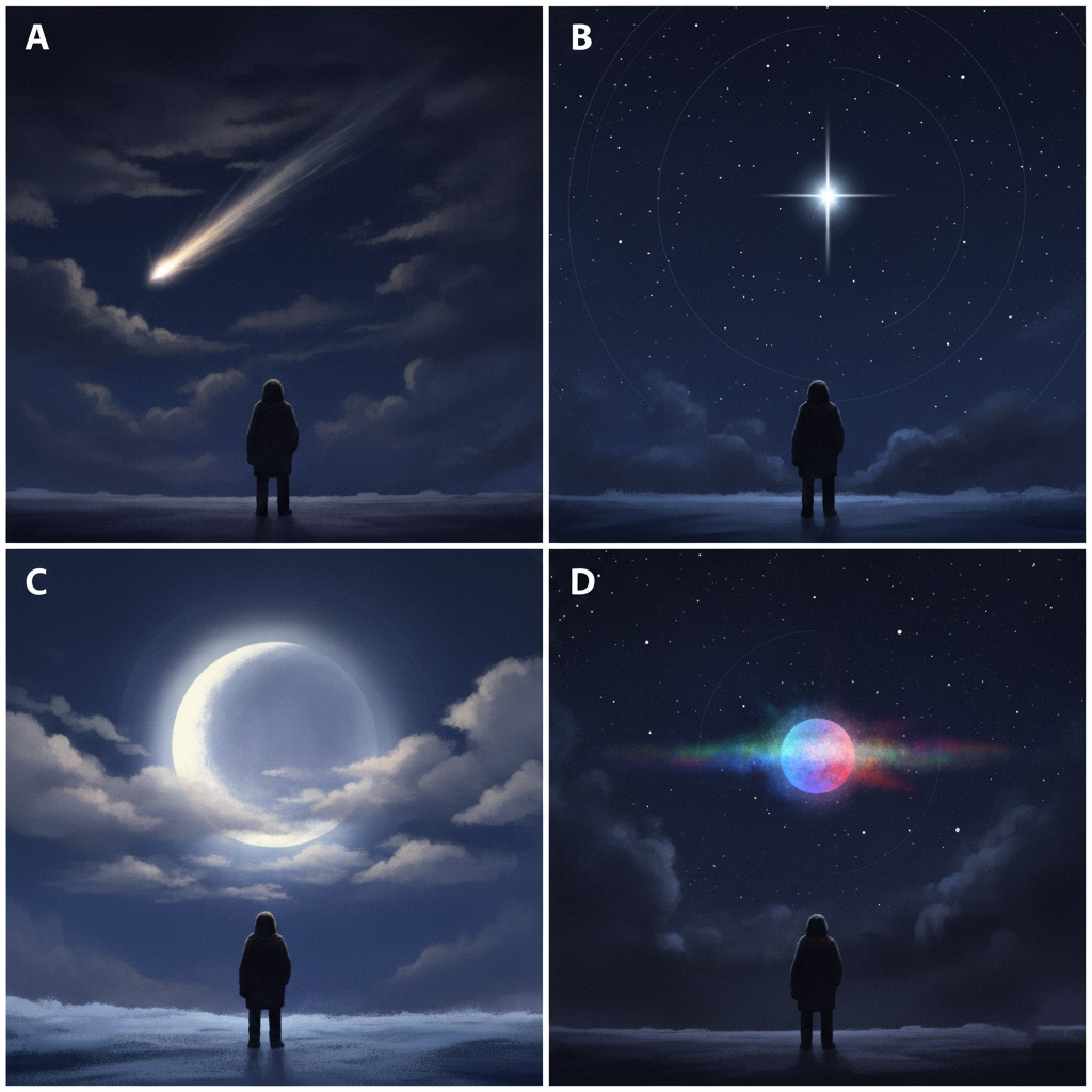 岁末年终,寒风悄悄渗进窗缝,心底那个人是否也让你感到迷惘?你明明想要安全感与依靠,却又在爱里不断自我怀疑,想要确认对方是否值得坚持。在金星合月的温柔光芒下,这个冬夜,请放下外界的喧嚣,仰望星空,直视自己的内心渴望。选择一颗最吸引你的星,它不只是星光,而是照亮你爱情盲点的光。流星、北极星、月亮或行星,每一种选择都透露出你的爱情模式、恐惧与内在需求,也指引你如何调整心态,迎接爱情转运。