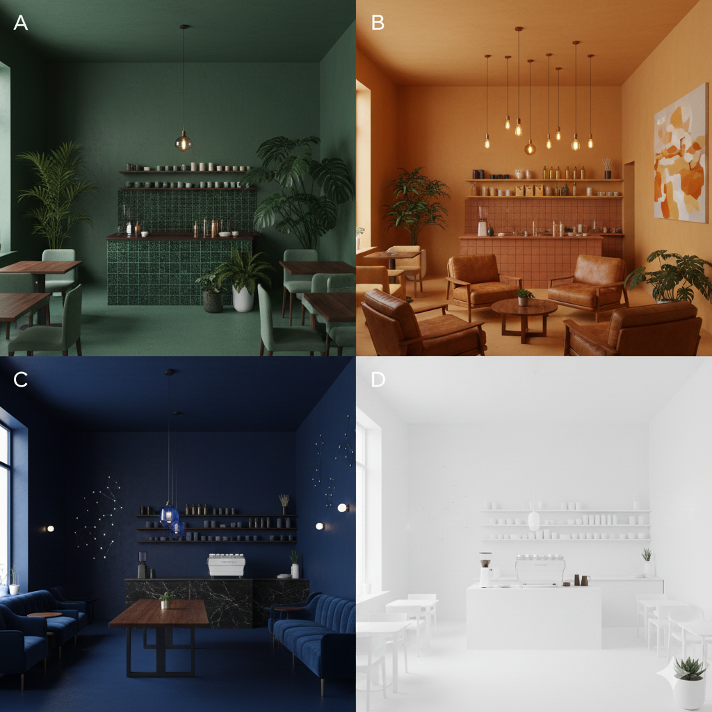 你现在走入一间装潢简约的咖啡店,你觉得哪一个颜色的装饰最能让你感到安心放松?