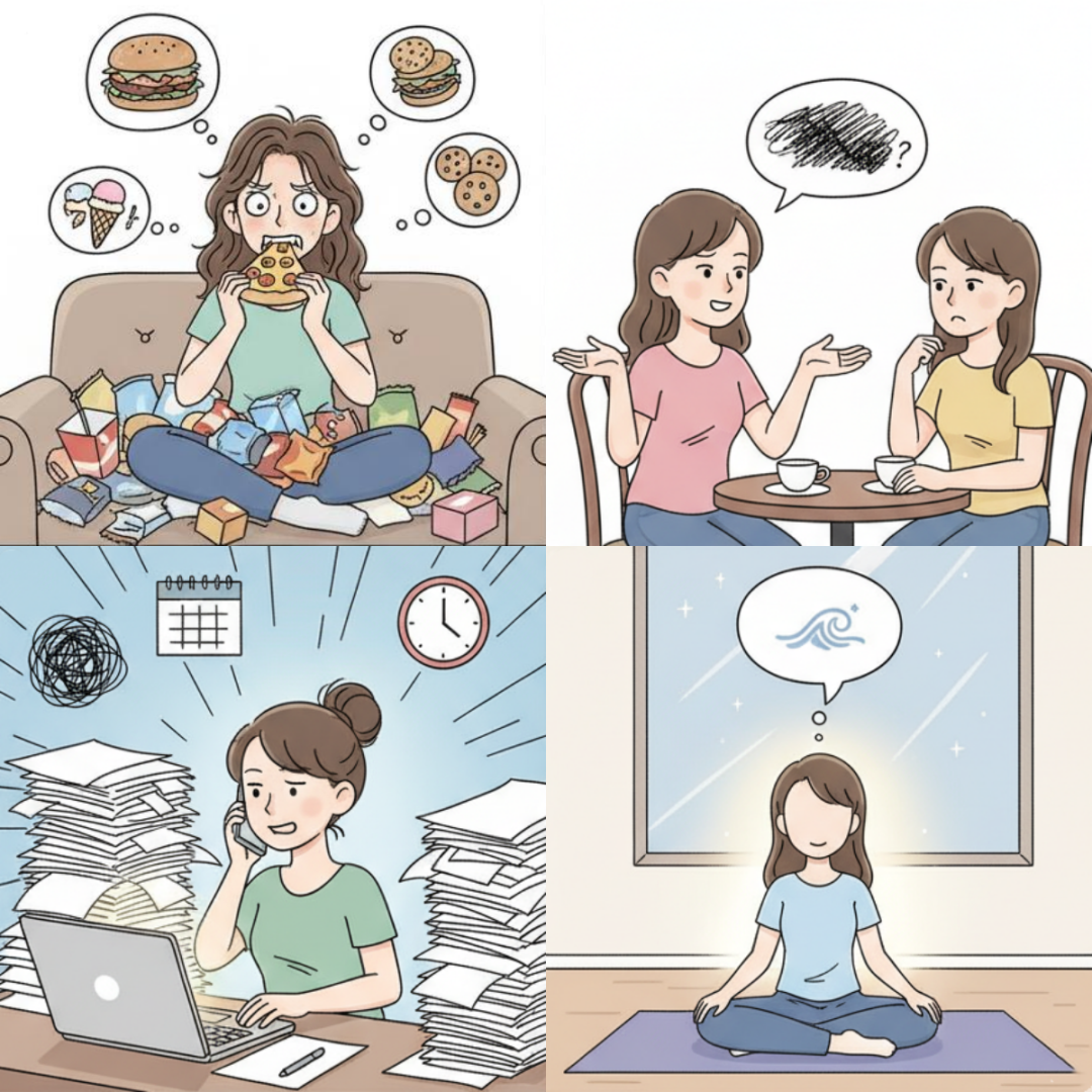 建议更健康的纾压方法:将倾诉转化为「共同解决」。在找朋友时,除了抱怨,可以主动询问建设性的意见,或与朋友进行一次能让你们共同放松的活动,例如一起去运动或看一场喜剧。让你们的互动不只是情绪的垃圾桶,而是能量的交换与共同成长。