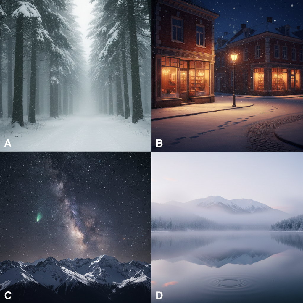 今年最后24天,宇宙正透过冬夜的流星雨与木星、月亮的合力,推动你完成年度的最后冲刺。这是一段能量集中、直觉清晰、方向逐渐明朗的时期。当下的每一个灵感与决定,都像是在替2026打地基。请先深呼吸,让心静下来,从四幅雪景中选出最吸引你的那一幅。你所选择的画面象征你此刻最需要启动的关键力量:有人需要突破卡住的局面,有人则要调整步伐、收心聚焦,也有人正在迎来新的机会视窗。跟着直觉,就能看见你年底真正的「冲刺能量」方向。