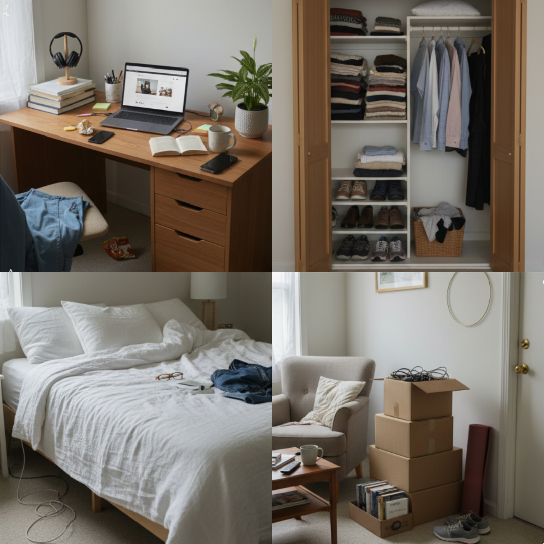 四个不同的房间角落,哪一个最让你感到心烦,最想在周末彻底整理?