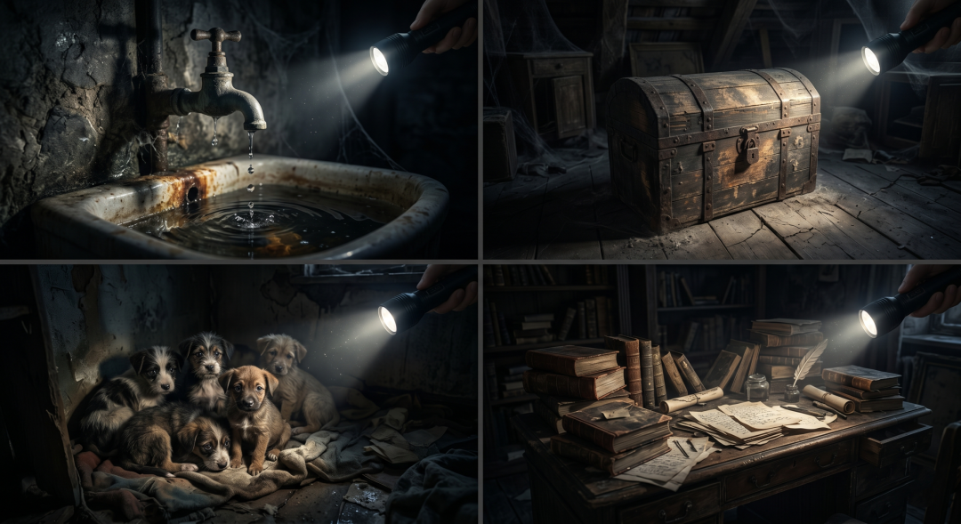 你探险走进一间神秘阴暗的房间,用手中的手电筒往里面照去,第一眼看到什么?