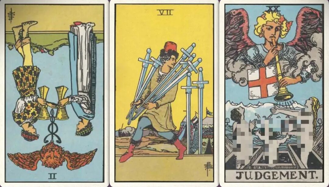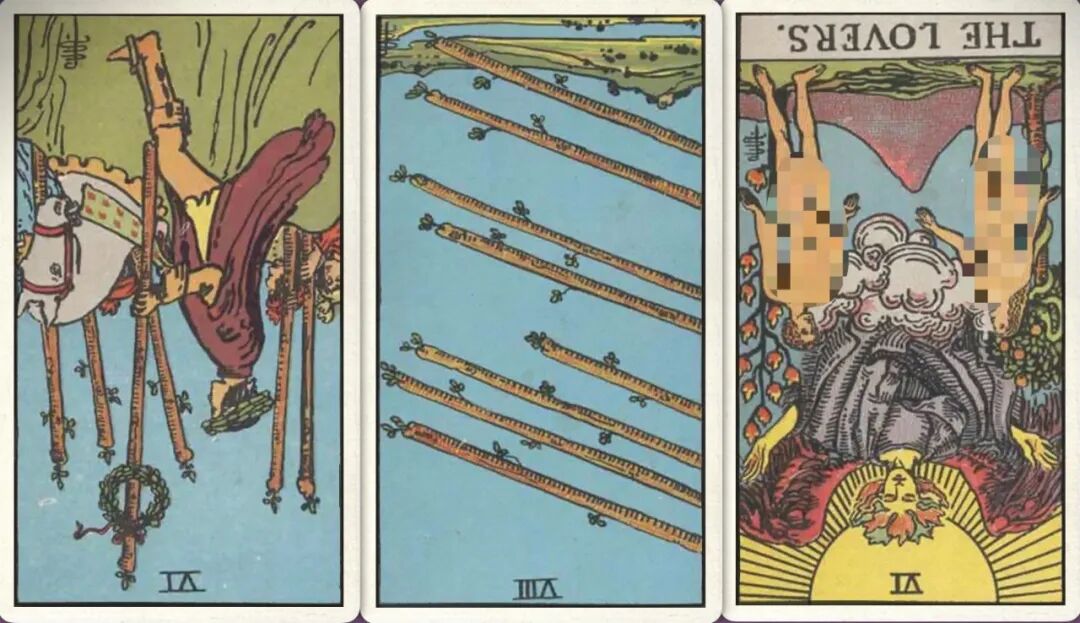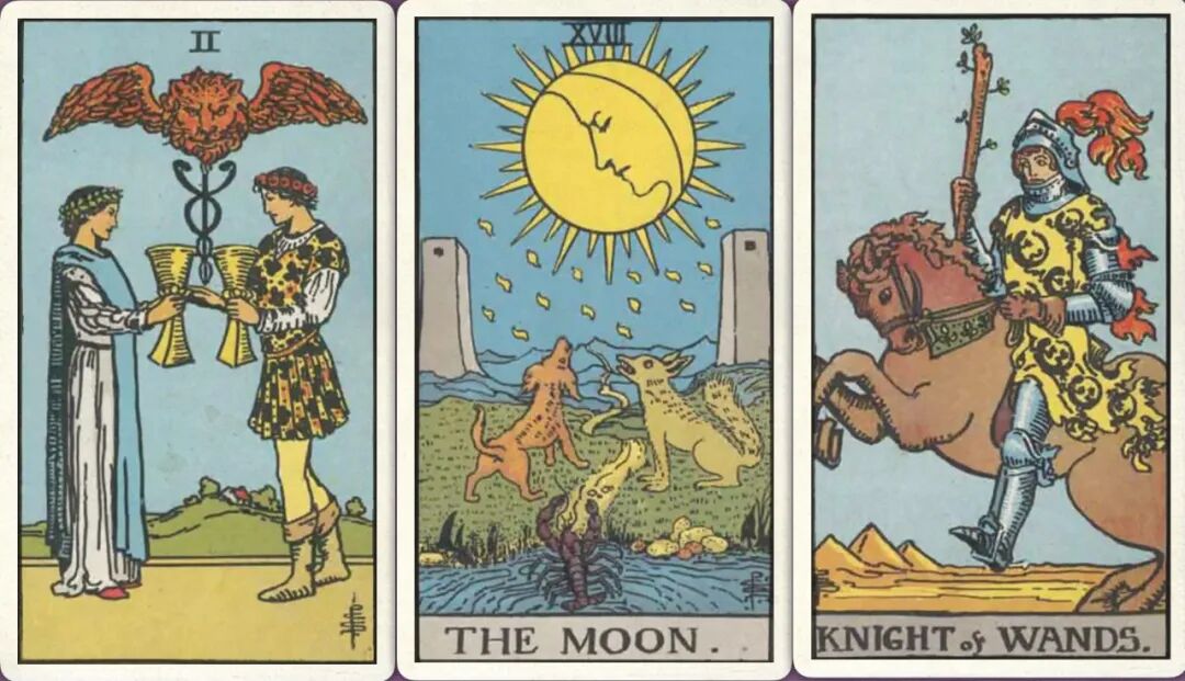 牌:圣杯二+ 月亮+ 权杖骑士+