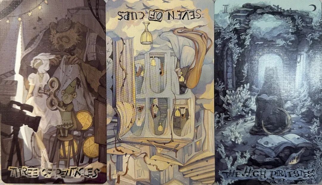 牌:星币三+ 圣杯七- 女祭司+