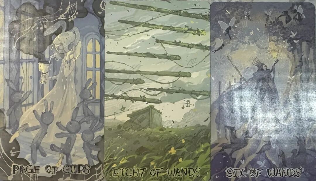 牌:圣杯侍从+ 权杖八+ 权杖六+