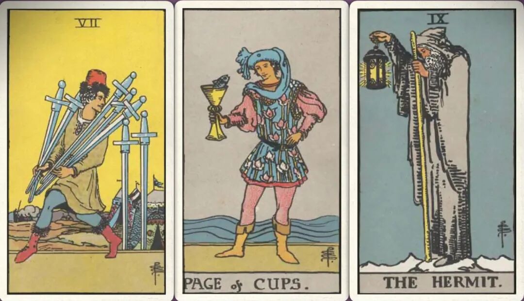 上半年:宝剑七+ 圣杯侍从+ 隐士+