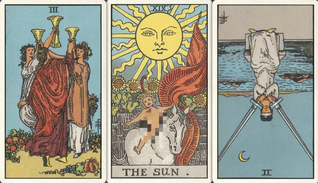 下半年:圣杯三+ 太阳+ 宝剑二-