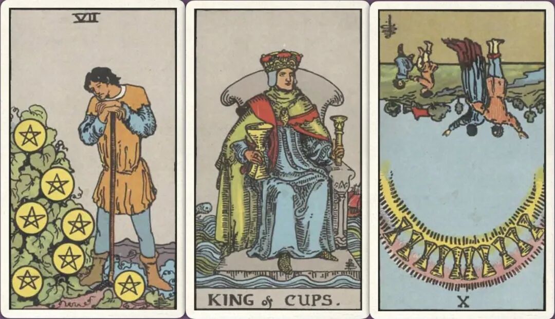牌:星币七+ 圣杯皇帝+ 圣杯十-