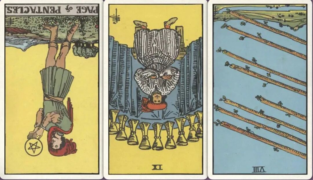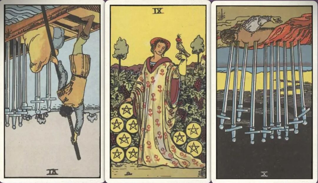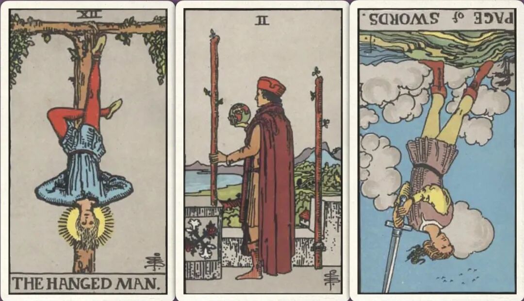 牌:倒吊人+ 权杖二+ 宝剑侍从-