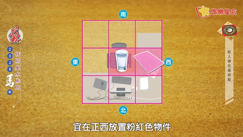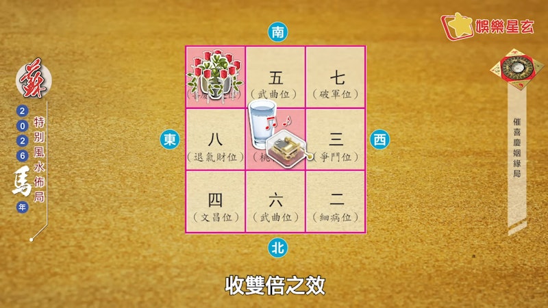 其实布置风水阵不一定要大费周章,有时只需一杯清水、几枝鲜花便能发挥大效用。苏师傅在YouTube频道娱乐星玄分享《2026马年 ? 特别风水布局》,表示有些风水阵的原理其实大同小异,主要是因应流年吉凶将物品在不同方位,就能趋吉避凶。