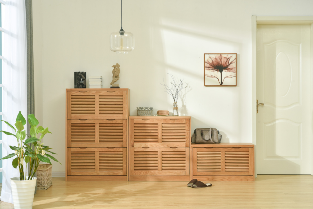 鞋柜的高度也需注意。鞋柜的高度应该适中,不宜过高也不宜过低。过高会给人压迫感,阻挡屋外的气流,影响通风采光;而过低则不够实用,无法满足储存需求。一般来说,鞋柜的高度控制在两米左右较为适宜。