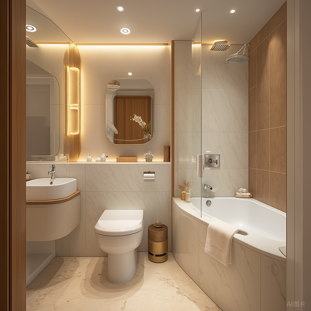 鉴于卫生间里水是主体元素,一般情况下比家里别的地方更容易潮湿,因此要为之留有足够宽的空间,以免因面积太小而造成使用者心里压抑和水气集聚于室内,不利于家庭成员身体健康。