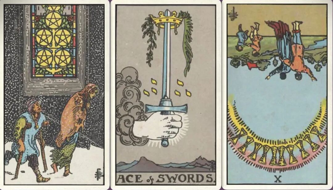 牌:星币五+ 宝剑ace+ 圣杯十-