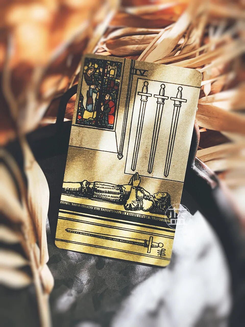 宝剑4是一张安静的牌,强调的是休息,对应到现实生活也可以看作是休养生息,或者身心上的完全休息。不过这个休息只是暂时的,可能是你对目前的生活感到疲惫需要休息,但也可能是在为接下来即将面对的事情养精蓄锐。