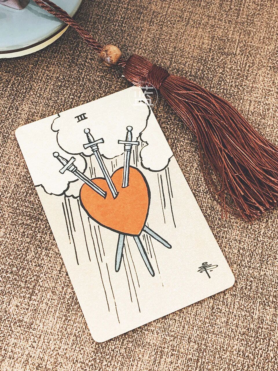 宝剑3是一张伤心牌,流露着悲伤、心碎、痛苦的情绪,而且这样的情绪不论正向还是逆向实际都存在。这也导致你可能会比较消沉,内心如同在经历一场乌云密布的大雨,不仅情绪低落,对某些事情可能还会耿耿于怀,甚至还可能有点扎心感觉。