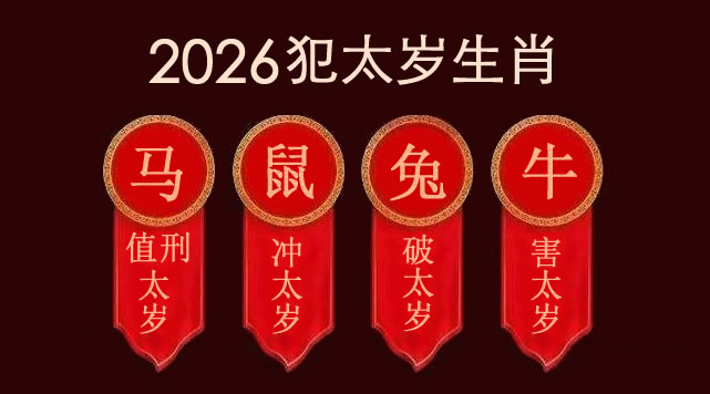 生肖马、鼠、牛、兔2026丙午马年犯太岁,一年都易犯小人、失财、情感不顺、大起大落,建议化解之。