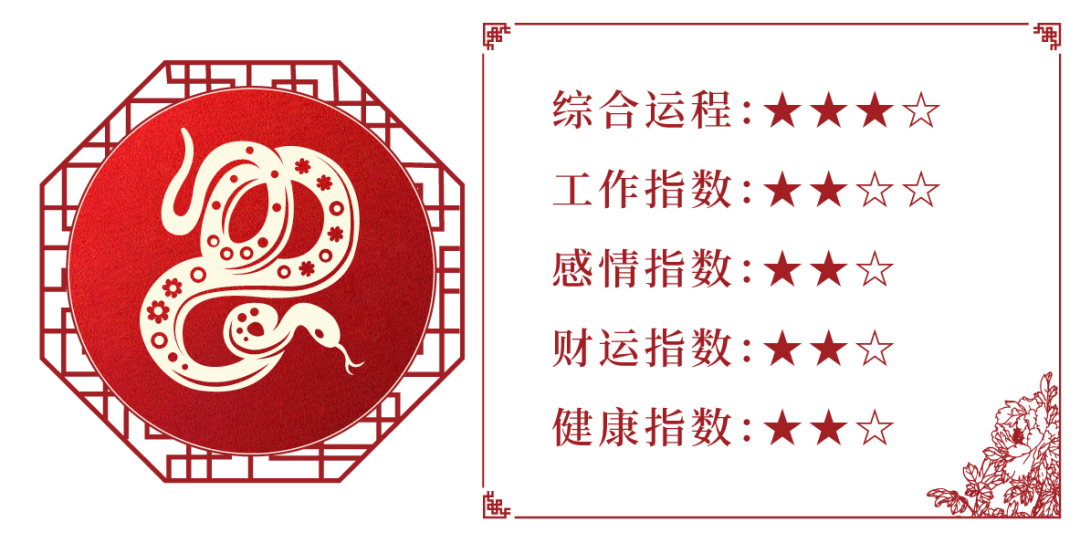 本月事业工作开展顺利,多能得到一些意想不到的收获和钱财进益;运势大有好转,呈上升趋势;但由于蛇遇马年稍犯“劫财”信息,他人出现打劫、分享自身收获成果之象;所以说本月运势虽佳,但仍需注意搞好自身人脉关系,应低调做事,相信付出定能得到好的回报。