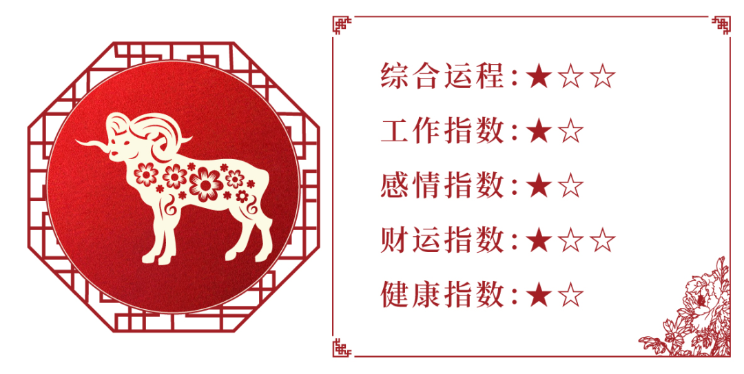 本月对生肖羊的朋友运逢“丑未冲克”,代表动荡不稳。运势不稳定,犯小人干扰较重,需调整好心态,避免意志消极,做事应尽心竭力,顺其自然,方可平顺度过。