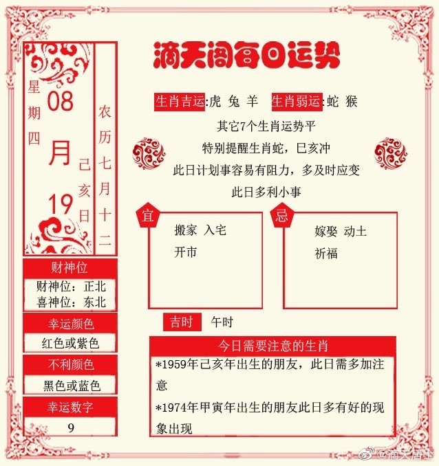 古易方一周生肖运势+每日宜忌(12.15-12.21)