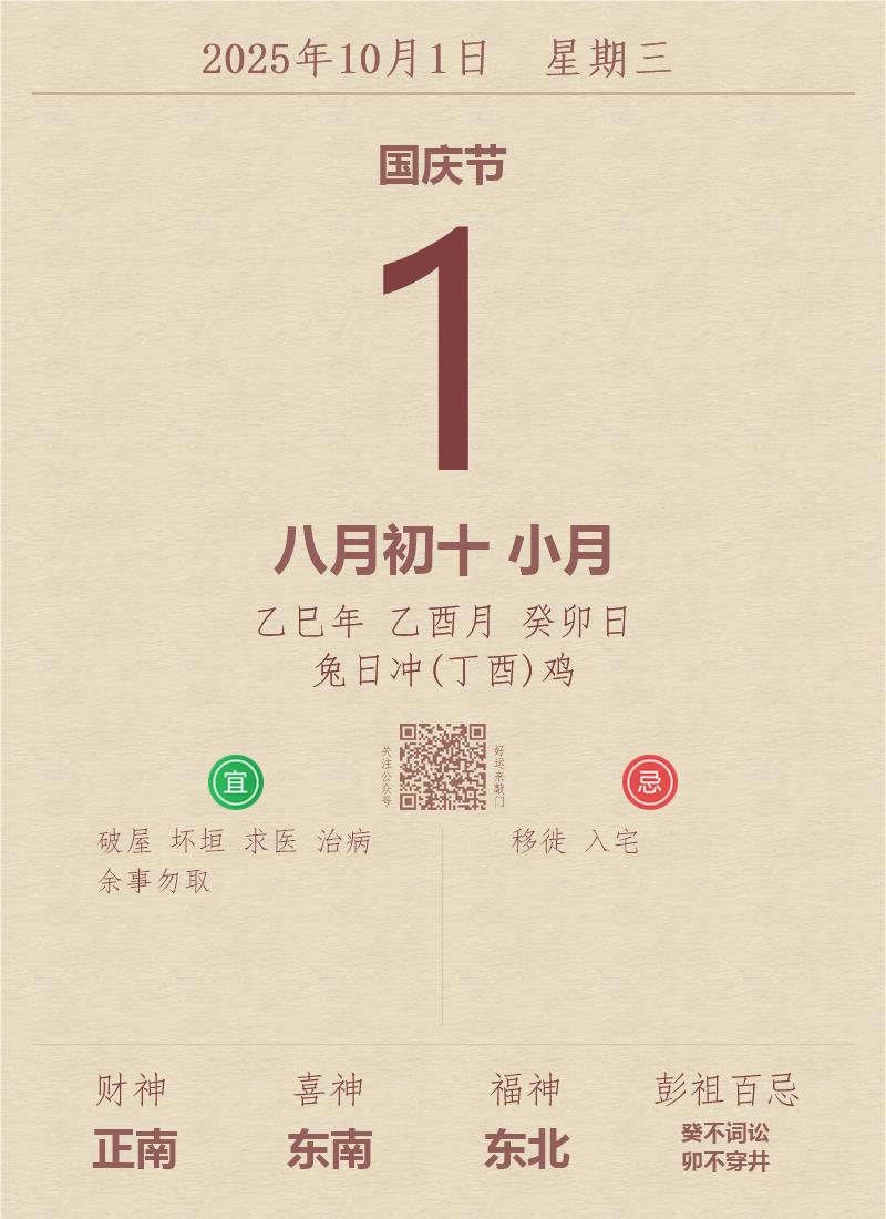 公历:2025年10月1日 星期三