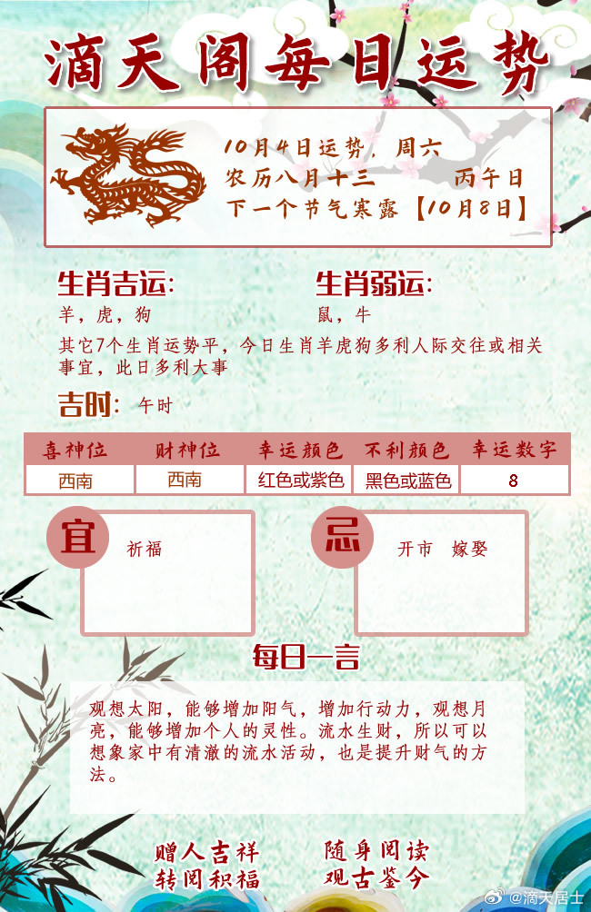 水玲师傅:今日五行能量/五行运势2025年10月4日
