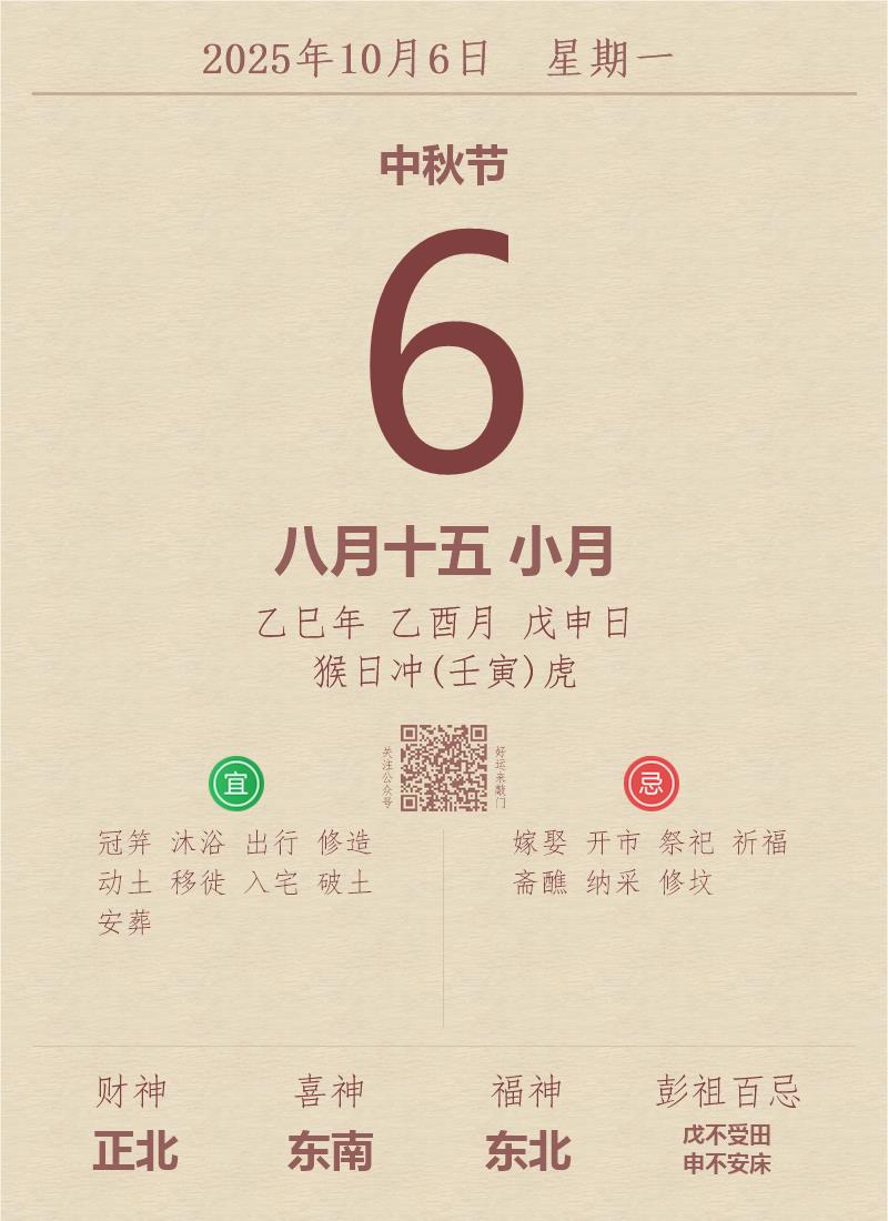 公历:2025年10月6日 星期一