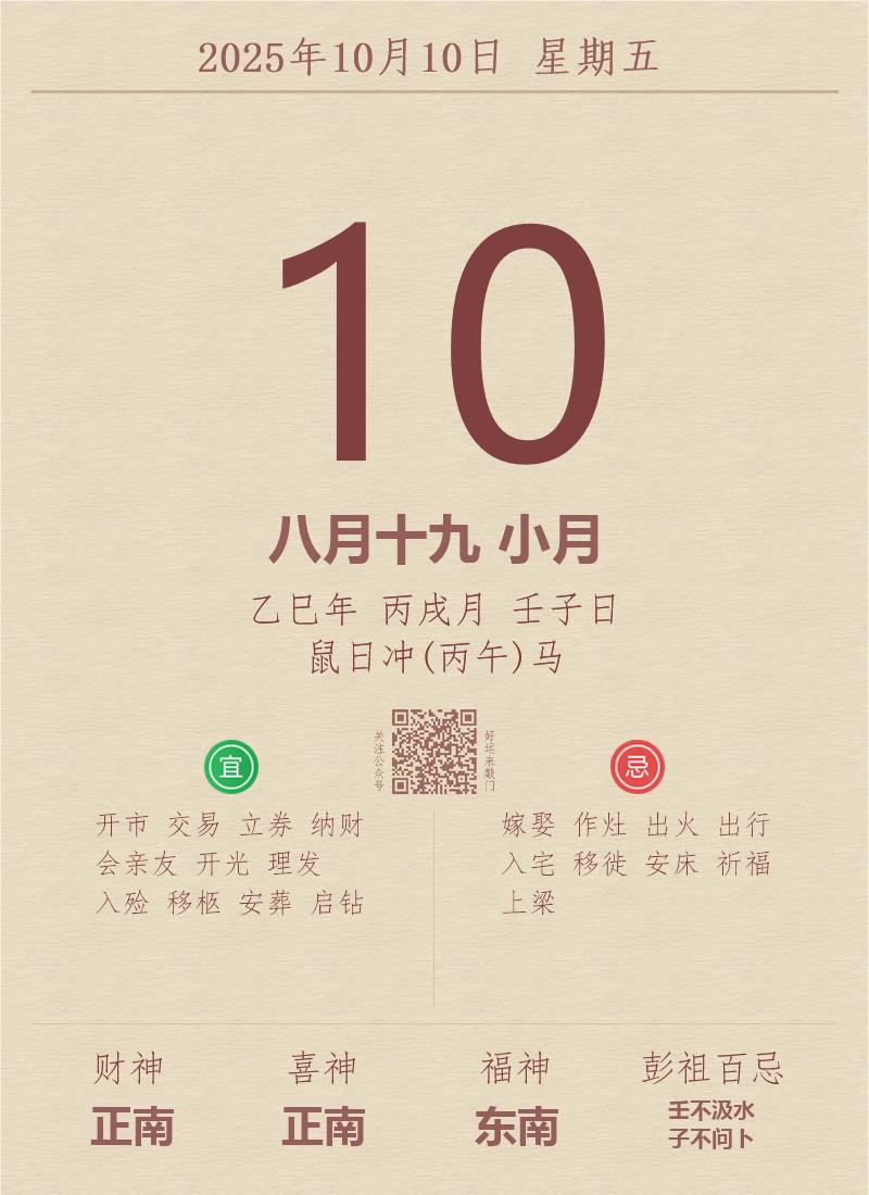 时宜:祈福 求嗣 纳采 嫁娶 求财 开市 交易 安床 祭祀