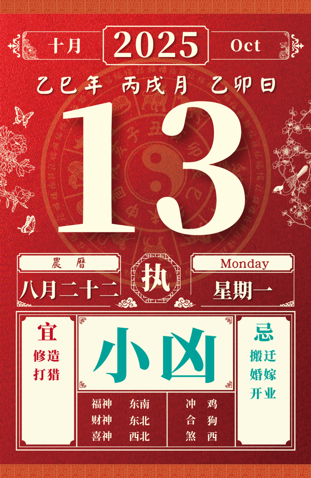 事业工作方面遇事多不能稳定,存在一定的变数;不过此日利于求职、外出及调动之事,应慎重利用。