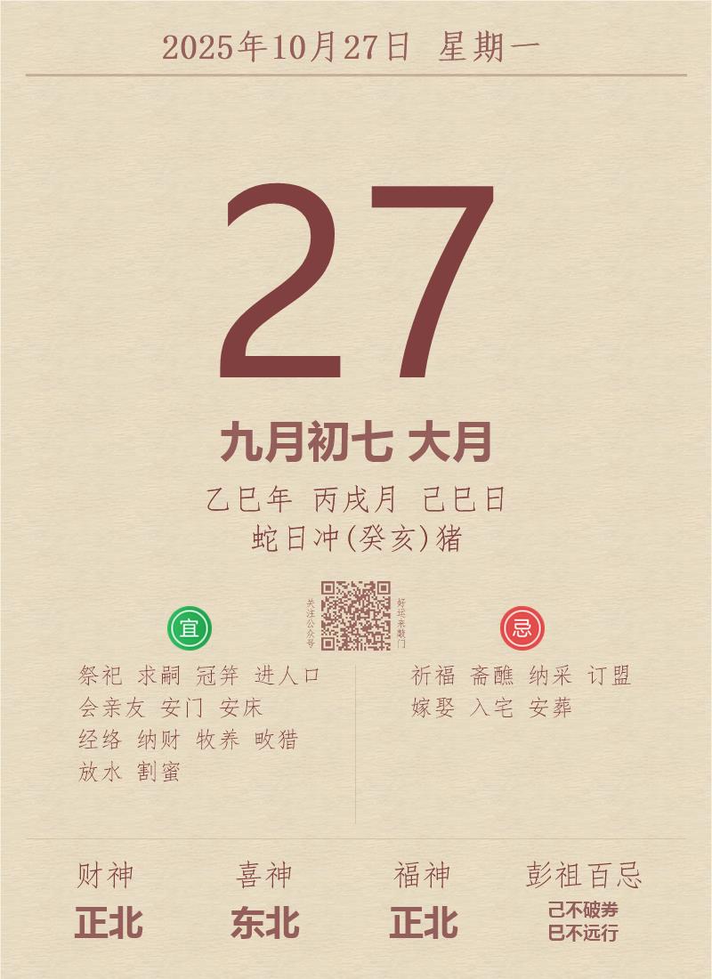 公历:2025年10月27日 星期一