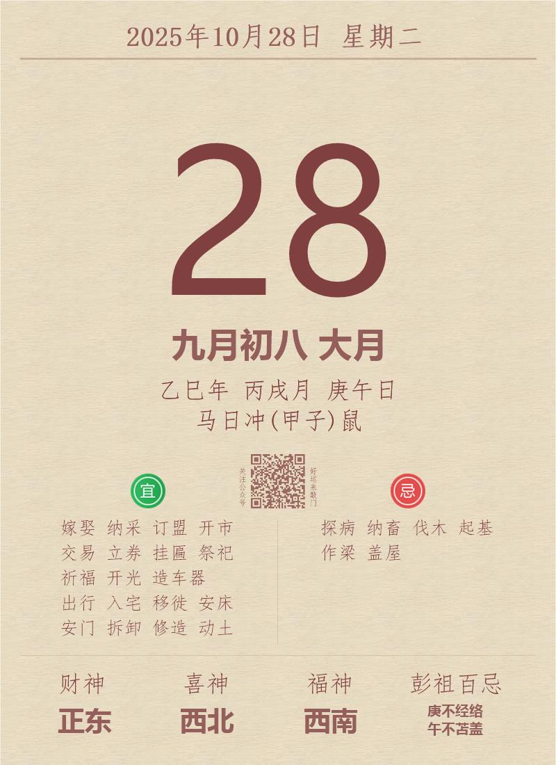 公历:2025年10月28日 星期二