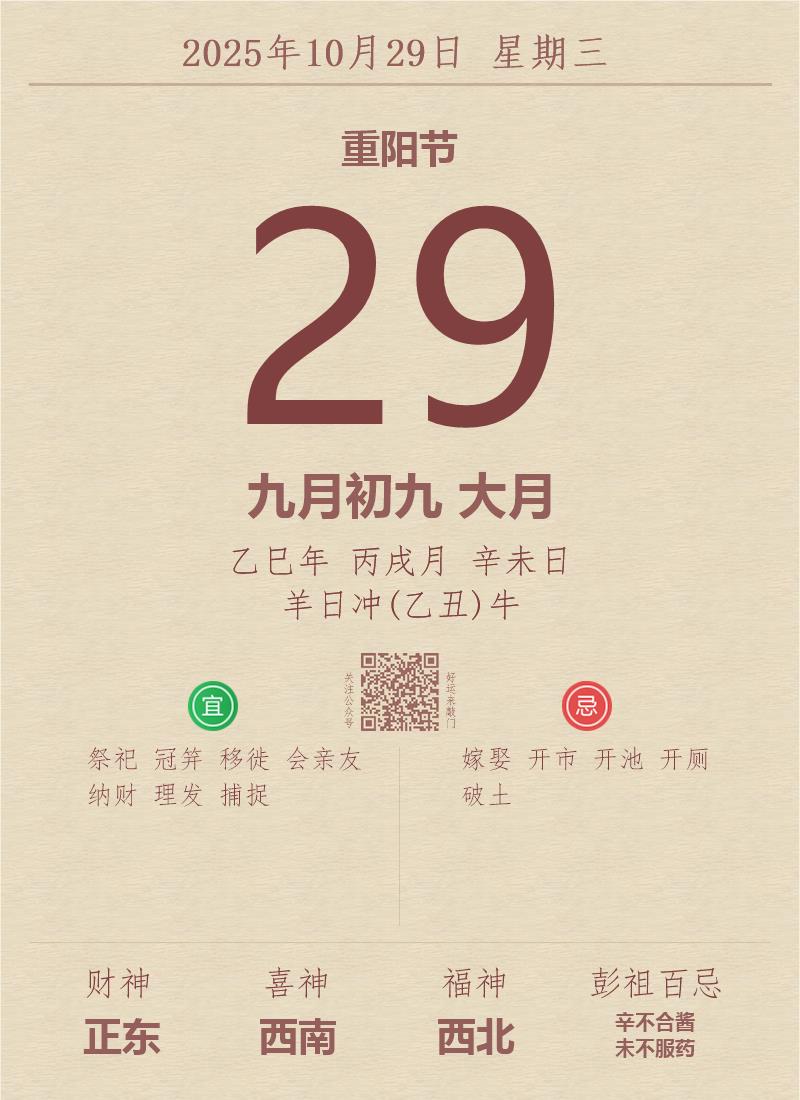 公历:2025年10月29日 星期三