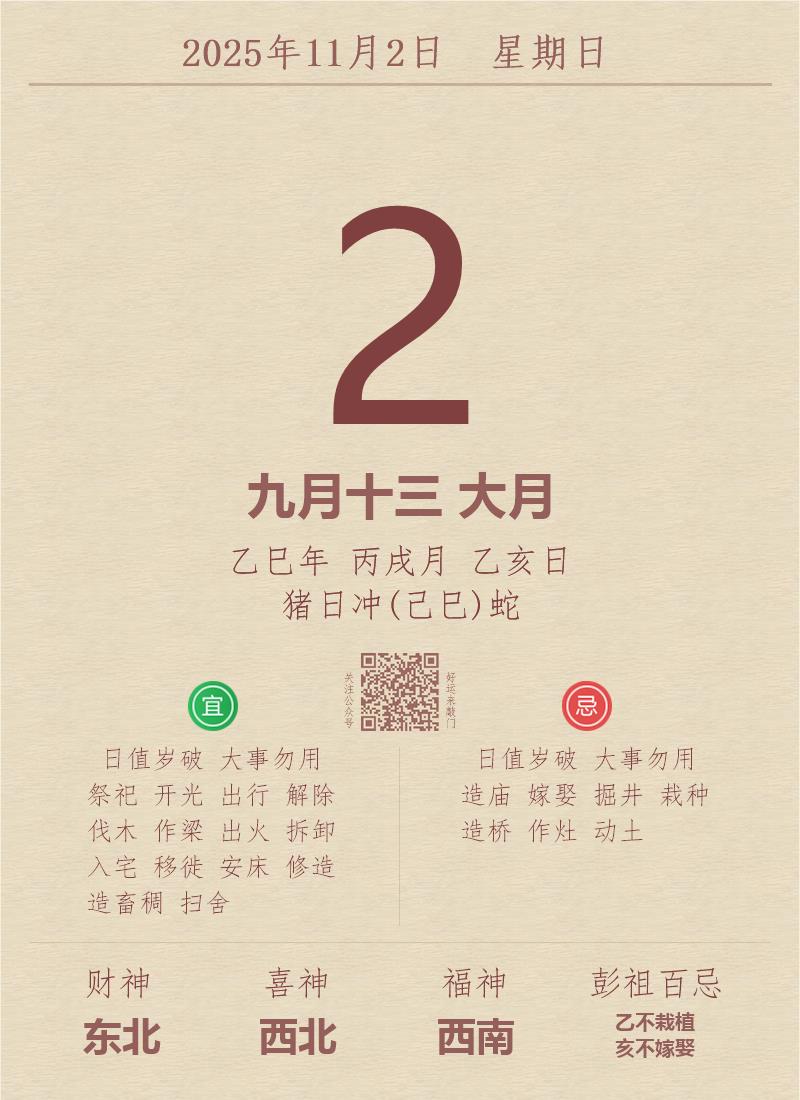 时宜:祭祀 祈福 酬神 出行 求财 见贵 纳采 嫁娶 修造 安葬 赴任