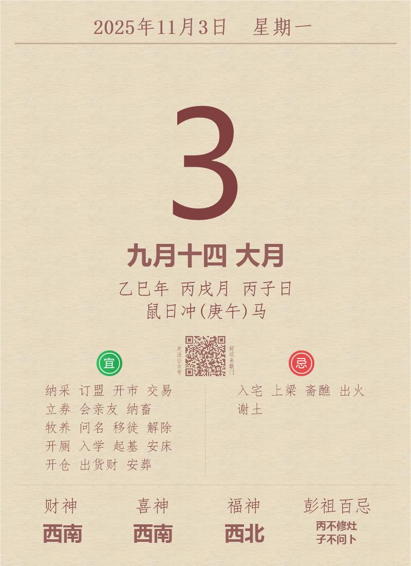 时宜:祈福 求嗣 纳采 嫁娶 出行 求财 开市 交易 安床 祭祀