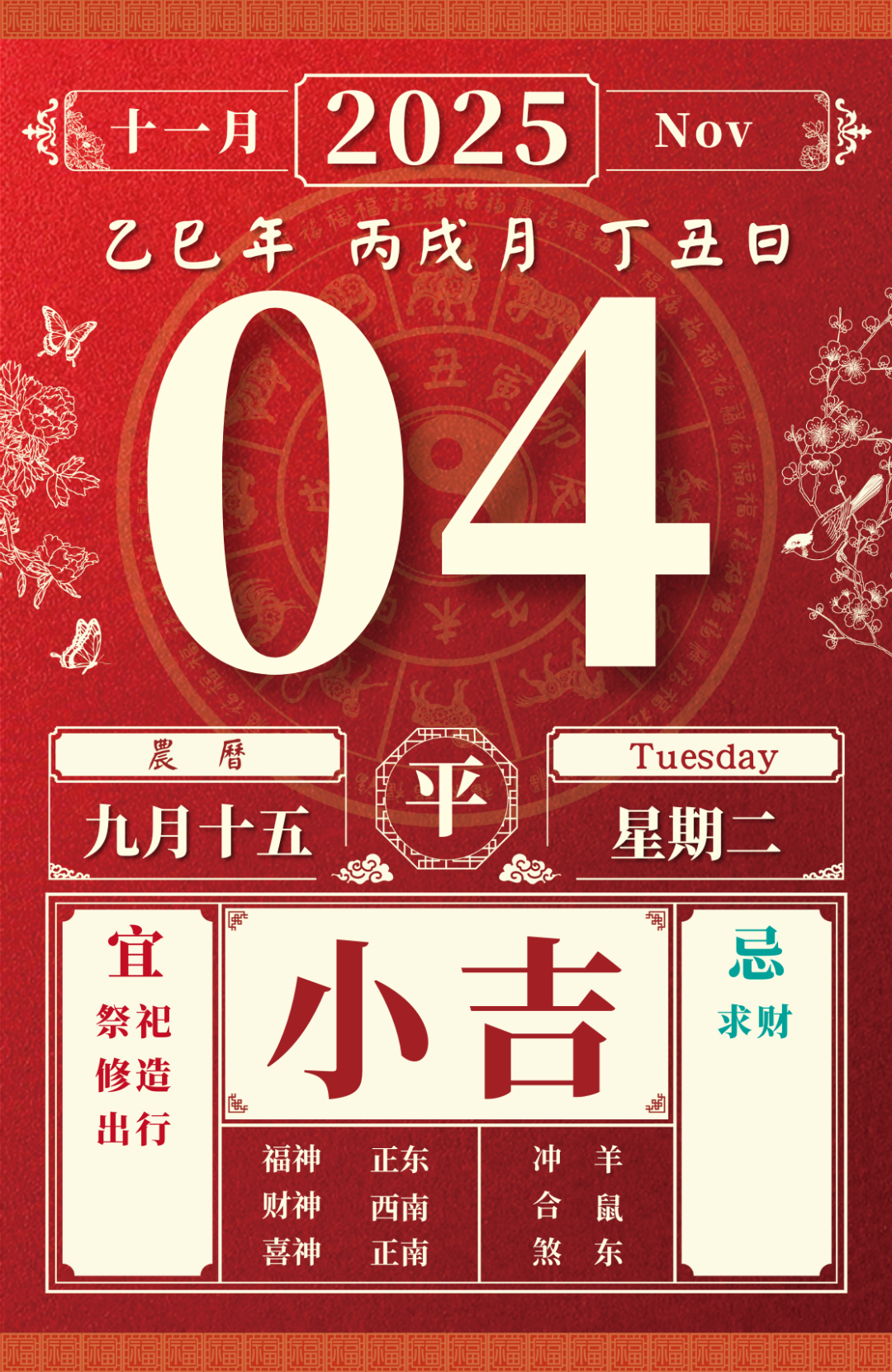 旺运方位:此日利于朝南方出行;北方不宜。