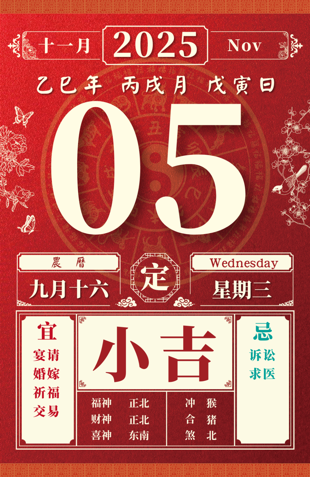 旺运方位:此日利于朝北方出行;西南方不宜。