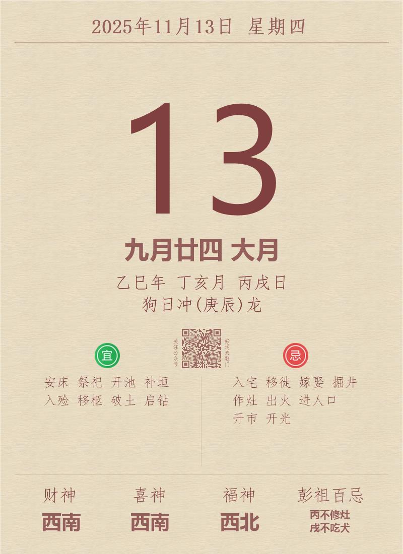 时宜:盖屋 移徙 安床 入宅 开市 开仓 祭祀 祈福 酬神 出行 求财 见贵 纳采 嫁娶