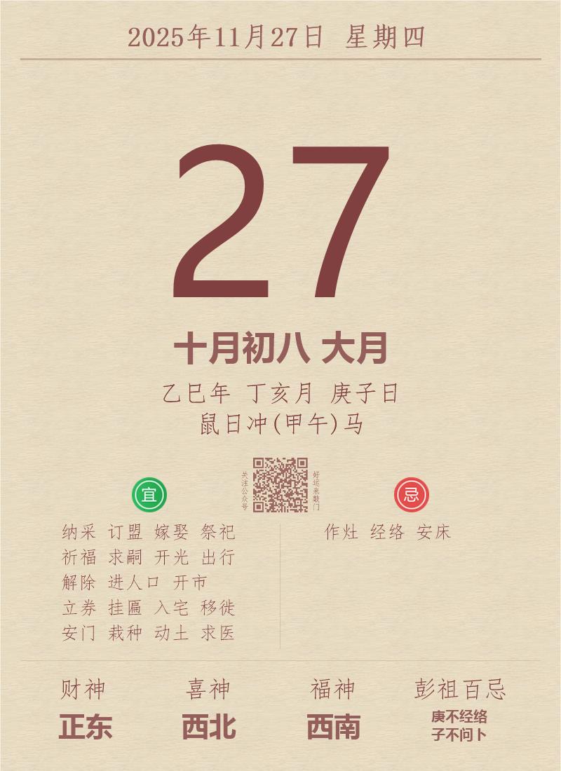 时宜:祈福 求嗣 纳采 嫁娶 求财 开市 交易 安床 见贵