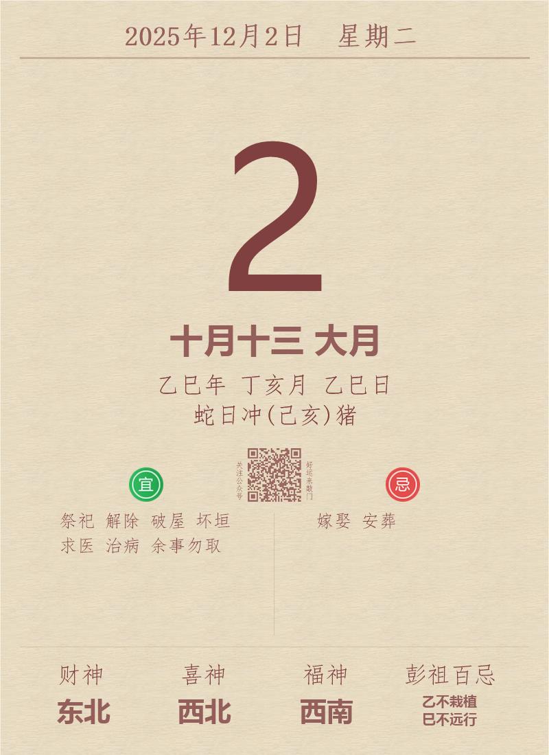时宜:纳采 嫁娶 安床 移徙 入宅 修造 安葬 求嗣