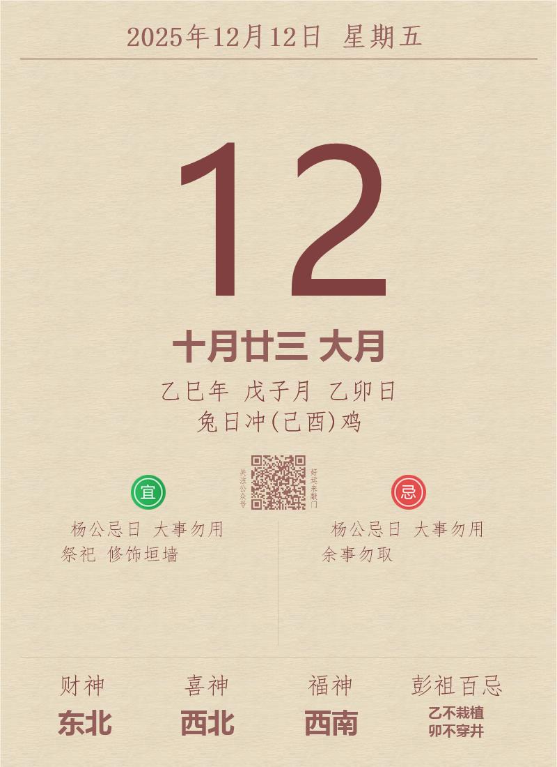 今日特别吉祥的生肖落在了猪、羊、狗身上。今日的地支为卯,依据传统生肖冲合逻辑,生肖猪、羊、狗与今日地支相合,故而他们被标记为今日运势极佳的生肖。对于属猪、羊、狗的朋友来说,预示着在今日将享有更为优越的运气,无论是行动执行还是机遇把握,都能体验到更为顺利的过程,且遇到有利条件的概率亦显著提升。宜趁着这股好运,主动出击,把握每一个可能带来正面影响的机遇,在职场、个人生活乃至情感世界里积极寻求正向变革。当然,怀抱乐观的同时,也要紧握理智的缰绳,避免无谓的风险尝试。须知,运势解析只能起到辅助作用,人生的航向与成就终究由个人的决策、努力与实践来决定。