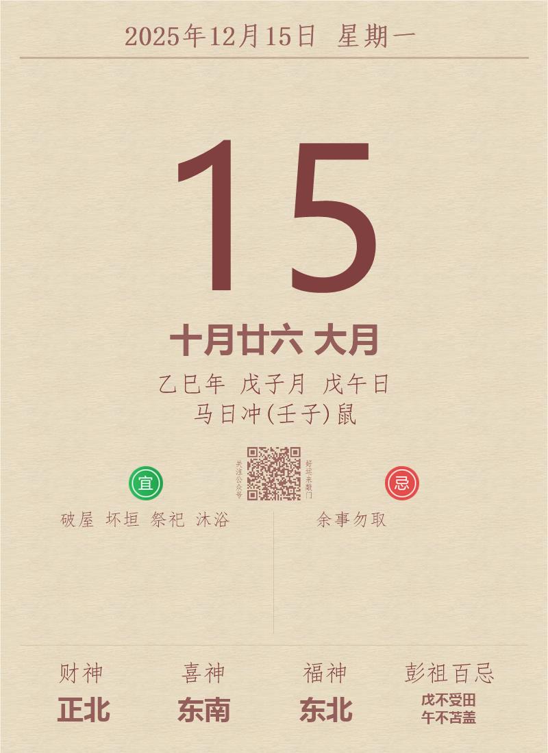 公历:2025年12月15日 星期一