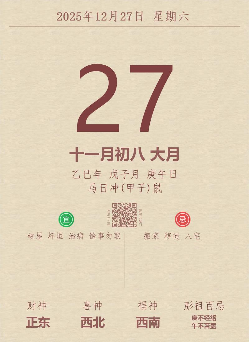 时宜:祈福 求嗣 订婚 嫁娶 求财 开市 交易 安床