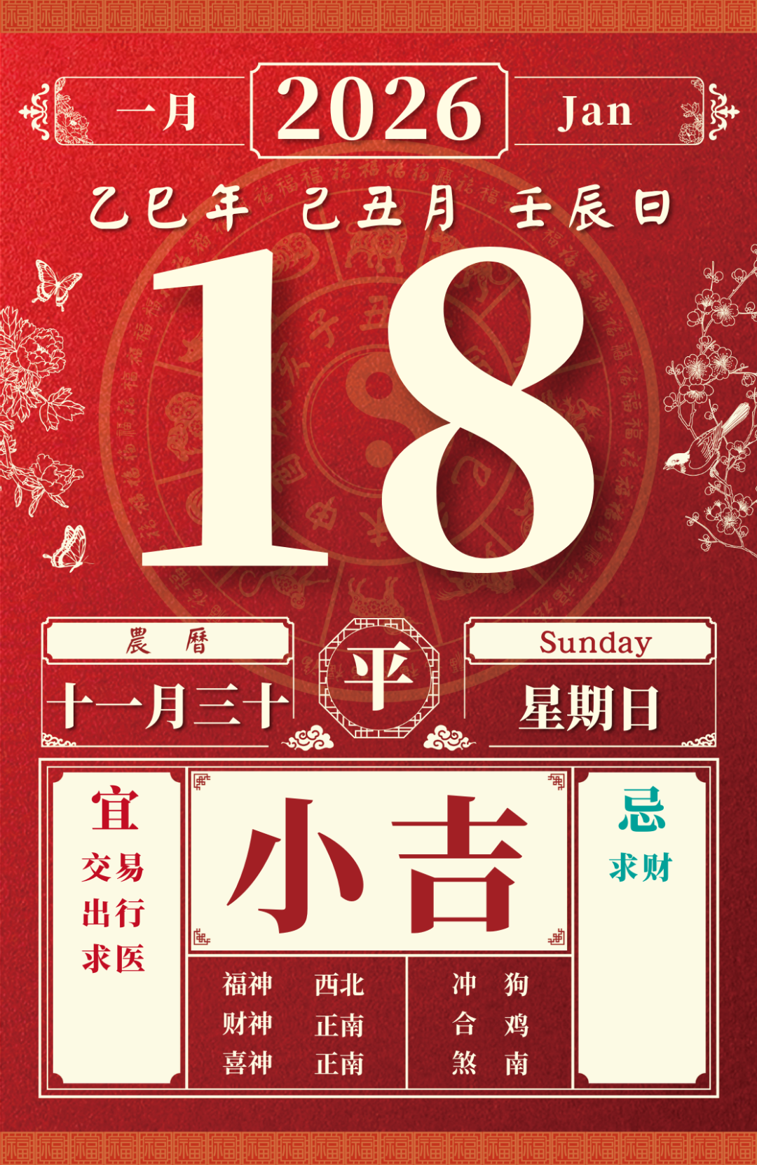 旺运方位:此日利于朝北方出行;西南方不宜。