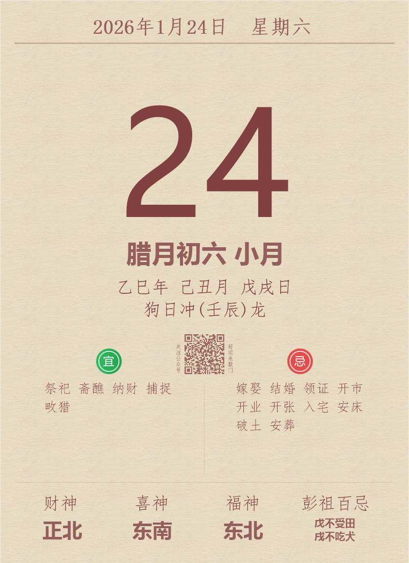 公历:2026年1月24日 星期六